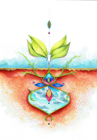 Encres acryliques, crayons, feuilles d'or (24 Karats) sur papier, 31x41 cm